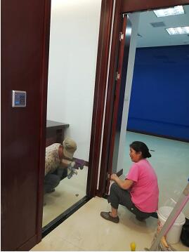 装修后的地面和墙砖上会残留很多的建筑垃圾和装修垃圾,诸如:水泥块、油漆点、玻璃胶等等,仅用时一天,胜利完成银行交给我们的保洁任务,获得银行的高度好评!