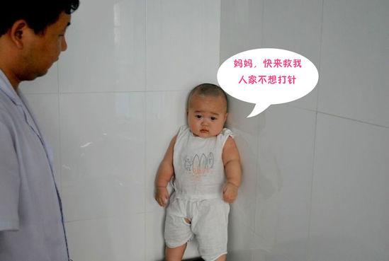 宝宝怕打针躲墙角