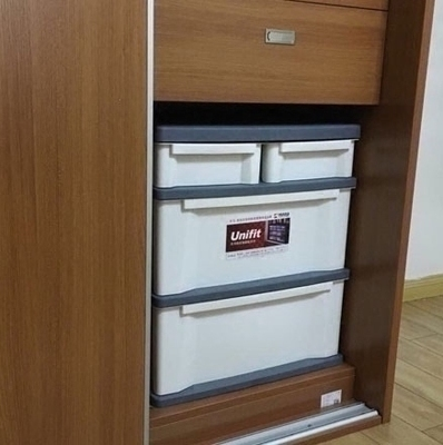 说完了衣架,还有一种超级变态的收纳盒,和一般日本家庭里面的一种”衣柜“size是配合设计的,其实是传统日式房间都会有的壁橱,分为上下两格,里面放被子什么的。就是机器猫睡觉的那种壁橱。