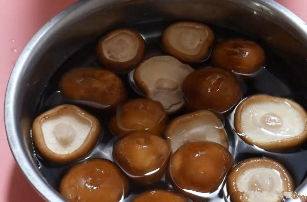 首先将香菇的底部剪掉,然后放入盆中将它浸泡。