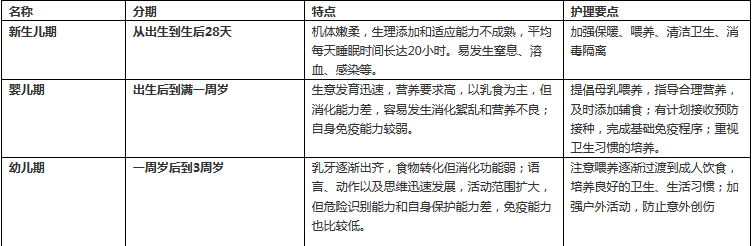 要成为专业的月嫂护理人员,对于婴幼儿年龄分期以及各个特点,需要掌握。婴幼儿处于不停的生长发育阶段,根据婴幼儿生长发育的不同阶段的特点,可将婴幼儿期细分为:新生儿期、婴儿期、幼儿期。婴幼儿年龄分期以及各个阶段的特点如下表:
