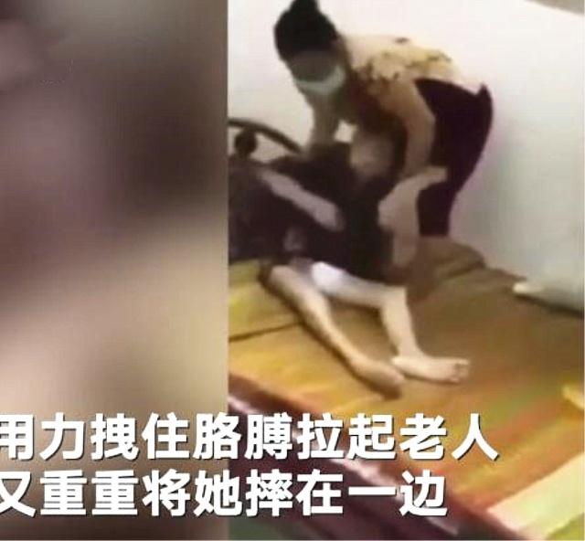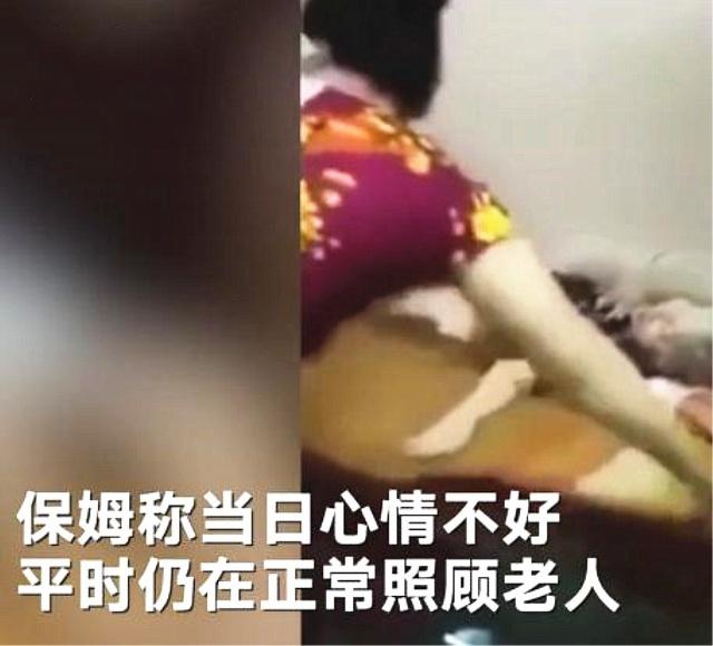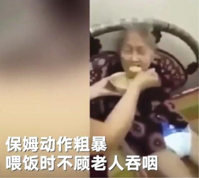 视频中保姆用勺子使劲往老人嘴里塞饭,老人被呛得都说不出去话来,而且保姆在挪动老人的时候先是对着老人的头部就是一巴掌,然后又抬起老人的两只胳膊,重重往边上一摔,由于身体原因老人也动弹不得只能任由她摆布...