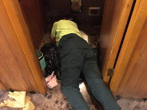 大研古城管理服务有限公司大石桥中班员工和云英正在保洁厕所坑位,她告知客人没有发现,男子便离开了。
