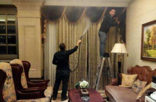窗帘洁净无污垢、无油渍,折叠熨烫整齐无褶皱,清洗后窗帘,完好无损坏,无抽丝。