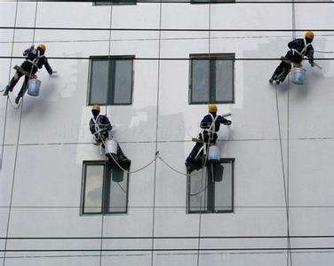 6、高空人员自行调整工作绳,使其拉紧,确认自己座稳后,开始保洁工作。注意事项:应注意将绳子避开棱角处,或锐利处,防止损伤绳子,有高压线的地方不可下绳。天气状况:在风力大于5级以上,雷雨天气不能下绳。