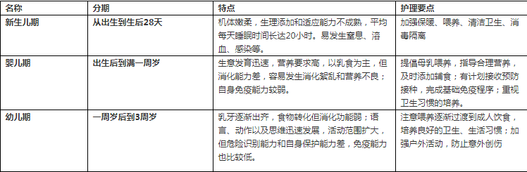 要成为专业的月嫂护理人员,对于婴幼儿年龄分期以及各个特点,需要掌握。婴幼儿处于不停的生长发育阶段,根据婴幼儿生长发育的不同阶段的特点,可将婴幼儿期细分为:新生儿期、婴儿期、幼儿期。婴幼儿年龄分期以及各个阶段的特点如下表: