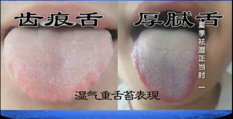 舌苔厚腻,舌边有牙齿的痕迹。