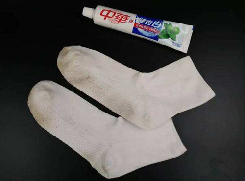 方法:先把袜子放在水中浸湿,在脏的地方抹上牙膏,搓洗完后别急着冲水,放一旁静置五分钟,然后再放入水中冲洗干净,这时会发现袜子又白回来了。