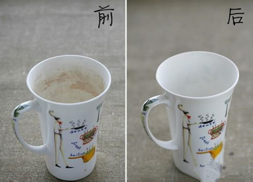 陶瓷杯喝茶喝咖啡,很容易留下茶垢和咖啡渍,可以在内壁抹上牙膏,擦洗一会儿,就可以干净如初。