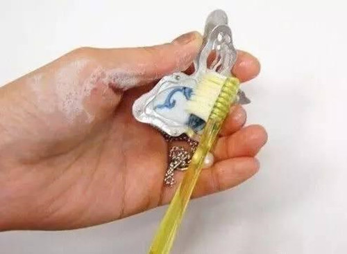 银首饰放久了不戴,容易氧化发黑,只要抹点牙膏上去,再拿牙刷刷一刷,冲干净后又能恢复原来的白净光泽。