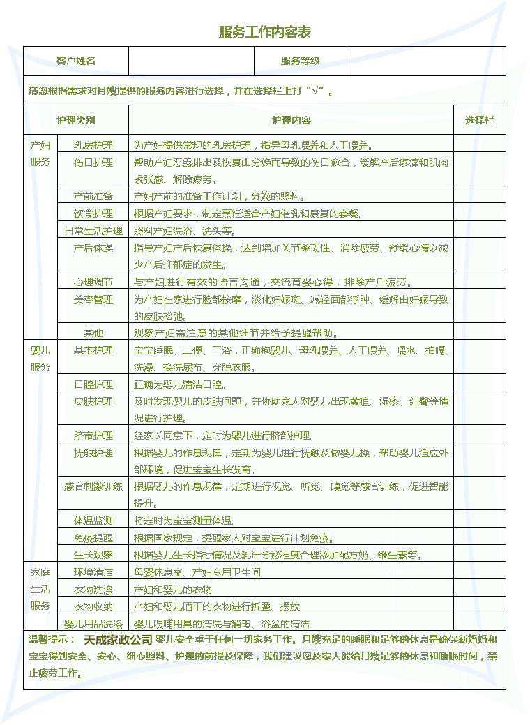 天成家政坚持线上运营,线下门店运营的结合线下服务的方式,服务内容涵盖家政保洁、保姆、月嫂、小时工、新房开荒、家电清洗、石材保养、维修服务等服务项目。