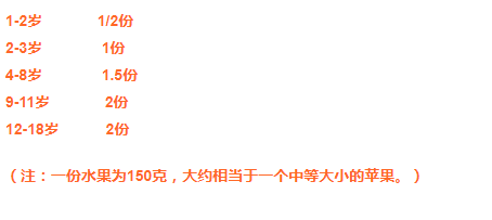 美国妇女、婴儿及儿童(WIC)补充营养项目建议:6~8月大的宝宝每天最多可以吃55~110克水果;8~12月的宝宝每天最多吃110~170克水果。孩子一岁以后,根据澳洲新南威尔士州卫生部的建议,每日推荐摄取的水果量如下: