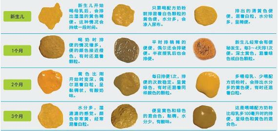 1.绿色便便:如果宝宝解了水样或糊状绿色大便,有酸臭味,多泡沫,多提示宝宝此时存在有消化不良、胃肠道紊乱等疾病。如果绿色便便中混有脓液,则是急性肠炎或痢疾的表现。在接受了大量广谱抗生素治疗的宝宝,如果突然出现带有腥臭味的暗绿色大便,并伴有灰白色片状半透明蛋清样伪膜,多提示为金黄色葡萄球菌性肠炎。