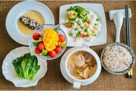 早:白米粥(里面掺和点小米),一个肉包子里面塞点酒酿(肉馅不吃,有开奶的功效)。