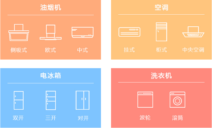 家电清洗包括电器很多:饮水机、油烟机、空调、洗衣机、电磁炉、电冰箱、电脑、电视等一些经常使用的家用电器,他们的清洗方法分别不同,有的需要清洗内部有的只需按照操作使用清洗剂清洗外部就可以了。不同的家电使用不同的清洗方法。