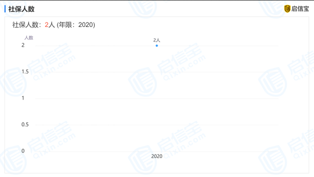 值得注意的是,启信宝显示,2020年该公司社保参保人数仅2人。