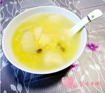 食材:鲜百合50克、雪梨1个、粳米100克、冰糖适量。