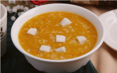 食材:南瓜一条,山药半根,大米、藜麦、小米适量,枸杞几颗。