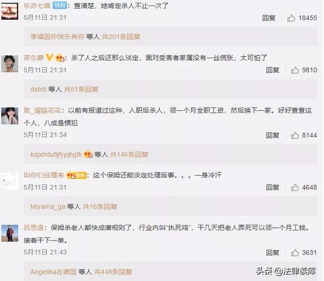 六、“保姆杀害老人”曝光后,很多网民在网上谴责:“太变态了,你还是人吗?”“你难道没有父母吗?”“你的良心是不是被狗吃了。”