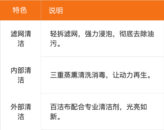 温情提示:金牌家政吸油烟机清洗服务采用免拆洗方式,无需将油烟机整体拆卸,有效避免拆卸产生的问题,如电路损坏,按键失灵,外观磨损等问题。