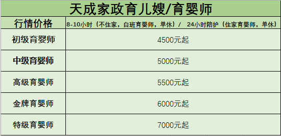 1、工作时长:8-10小时(不住家,白班育婴师,单休),24小时陪护(住家育婴师,单休)